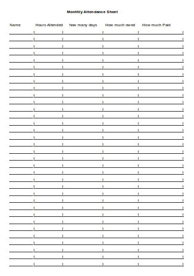 The school attendance sheet template is a document which is used to keep the record of students or even the teachers, to know how many of them are present and who were absent. The attendance sheets are of different types; some are for monthly records, while some are for weekly records or even for daily attendance. Moreover, it includes a list which consists of the names of students if it is for the attendance of students, and there are further columns to mention their presence and their time of arrival as well. The method of keeping the record of attendance is of great importance as it will change the attitude of students towards their studies and to be punctual at the school. In the educational field, you can not deny the importance of attendance sheets. This is because students are allowed to attempt papers on the basis of this record. This way, they will have to maintain a certain percentage for attempting papers.